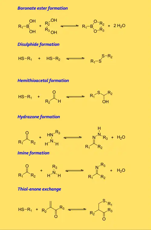 - ^ Schaufelberger, F.; Timmer, B. J. J.; Ramström, O. Principles of Dynamic Covalent Chemistry. In Dynamic Covalent Chemistry: Principles, Reactions, and Applications; Zhang, W.; Jin, Y., Eds.; John Wiley & Sons: Chichester, 2018; Chapter 1, pp 1–30.