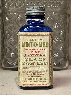The term milk of magnesia was first used by Charles Henry Phillips in 1872 for a suspension of magnesium hydroxide formulated at about 8% w/v.[16] It was sold under the brand name Phillips' Milk of Magnesia for medicinal usage.
