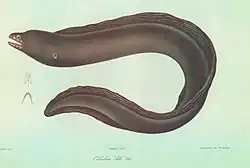 4. ^ Christopher Scharpf & Kenneth J. Lazara (22 September 2018). "Order ANGUILLIFORMES: Families PROTANGUILLIDAE, SYNAPHOBRANCHIDAE, HETERENCHELYIDAE, MYROCONGRIDAE, MURAENIDAE, CHLOPSIDAE and DERICHTHYIDAE". The ETYFish Project Fish Name Etymology Database. Christopher Scharpf and Kenneth J. Lazara. Archived from the original on 18 November 2021. Retrieved 18 November 2021.