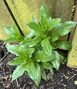 Epilobium tetragonum is characterized by its distinctive square-shaped stem, with leaves evenly spaced in a tetragonal arrangement around the stem, giving the plant a square-like appearance. The leaves are hairless and solid green and have a unique shimmer in direct sunlight.[2]