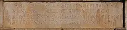 The eastern wing includes two panels of walls separated by colossal Roman-like pilasters.[1] On the left is a doorway flanked by pilasters and decorated by a coat-of-arms in the timpany, between lateral windows, also flanked by pilasters.[1] To the right, there are two porticos flanked identical windows one framed by pilasters, crowned by inscription and coat-of-arms, and the other framed and decorated. This wing is to the south (towards Rua do Souto) with identical inscription, but with windows between registers and window in the mezzanine.[1]