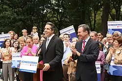 In the 1998 Democratic primary, Schneiderman, defeated Daniel O'Donnell, a civil rights attorney, with 68% of the vote.[8] In the general election, he defeated Vincent McGowen with 82% of the vote.[9] He won re-election in 2000 (84%),[10] in 2002 (87%),[11] 2004 (89%),[12] 2006 (92%),[13] and 2008 (90%).[14]