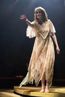 Welch has also named Fleetwood Mac member Stevie Nicks as being a musical, fashion and general influence.[90] Welch can sometimes be seen in concert paying homage to Nicks' famous billowing stage dress.[91]