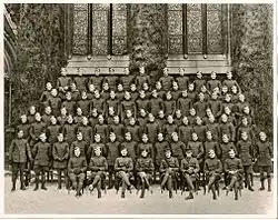 • Group portrait of instructors and part of the first group of 200 Australian cadets from the 1st AIF to attend a School of Aeronautics training course after they had volunteered to train as pilots for the Royal Flying Corps (RFC) (1917)[12]