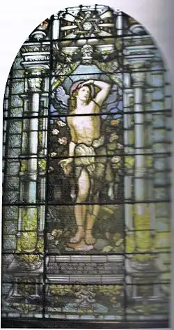 As a result, Shields created a complex iconographical programme, in which Biblical subjects were mingled with more allegorical concepts. He wrote to G. F. Watts: "I should have to write a book to lay before you my scheme, but Prophets and Apostles, Christian Virtues and worldly vices, Gospel and Apostolic history, types and symbols all enter into it."[12]