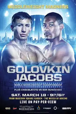 15. ^ "Golovkin vs. Jacobs Deal Done – March 18 at MSG, HBO PPV – Boxing News". www.boxingscene.com. Retrieved 2016-12-17.
