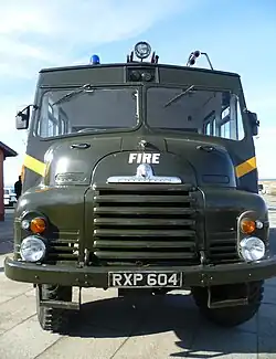 In March 2004, the British Government announced that it was conducting a test sale[3] of forty of its remaining fleet of more than nine hundred vehicles, and that it was planning to dispose of the remainder. The sale of the fleet was completed, and most of the vehicles were sold to fire brigades in developing countries, mostly in Africa.[4] Some were donated to museums, including the prototype which was placed in the Museum of RAF Firefighting. Others are in the National Emergency Services Museum, Military Museum Scotland, National Museum of Scotland, Kent Firefighting Museum, Leicester Fire Brigade Museum, Yorkshire Air Museum and Montrose Air Station Heritage Centre. Some were purchased by vehicle restoration trusts and some are privately owned.