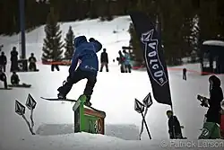 A grind rail is a railing used by skateboarders, snowboarders, and skiers to do tricks, such as grinds and slides.[1] They are usually square or round.