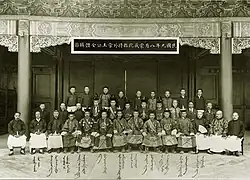 When the Xinhai Revolution broke out in 1911, Gungsangnorbu probably joined the Royalist Party and advocated the independence of Mongolia from China. As Outer Mongolia managed to gain independence with Russian support, Gungsangnorbu turned to the Japanese. He and other Inner Mongolian princes took loans and received arms from the Japanese to prepare their secession from China. The Imperial Japanese Army even dispatched a major and two captains in December 1911 to act as liaison officers for Gungsangnorbu.[9] In the aftermath of the Xinhai Revolution, Gungsangnorbu made some attempts to form an alliance with Bogd Khan and the Khalkha Mongols in the newly independent state of Mongolia, with the Pan-Mongolist aim of annexing China's Inner Mongolian territories to an independent, Mongol-dominated Greater Mongolia. However, political fragmentation and the reality of a large Han Chinese population in his own domains thwarted this idea. He restricted himself to a more modest effort to attempt to consolidate his own power and unite the Inner Mongolian nobility. He began purchasing weapons from a group of Japanese army officers in Beijing connected to Kawashima Naniwa; however, the arms shipments were intercepted and the officers involved arrested, bringing to an end Gungsangnorbu's efforts to strengthen his own military power.[12] Instead, he participated in Yuan Shikai's Beiyang government, taking a position as director of the Mongolian and Tibetan Affairs Commission, and overseeing the establishment of the Mongolian and Tibetan Academy in Beijing, which trained a number of cadres who would go on to achieve prominence in Inner Mongolian politics in the coming decades.[5] He was the only Mongol prince to achieve ministerial rank in Yuan's government.[6] He would hold that position for seventeen years, though in the chaos of the Warlord era he was not able to achieve all that he hoped for. After the 1928 Northern Expedition he resigned from his position, and died two years later.[6]