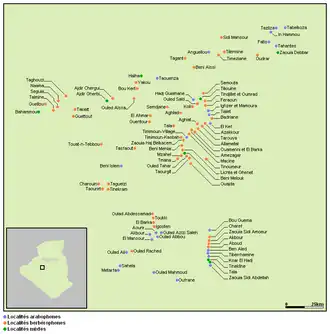 Map of the ksour of Gourara by spoken language | |