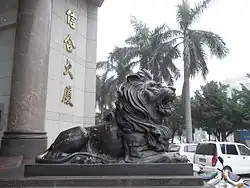 An example of a "counterfeit" HSBC lion in China, one of a pair located in Xinhui.
