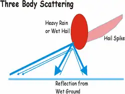 1. ^ a b c Lemon, Leslie R. (June 1998). "The Radar "Three-Body Scatter Spike": An Operational Large-Hail Signature" (pdf). Weather and Forecasting. 13 (2): 327–340. Bibcode:1998WtFor..13..327L. doi:10.1175/1520-0434(1998)013<0327:TRTBSS>2.0.CO;2. ISSN 1520-0434. Retrieved 2011-05-25.