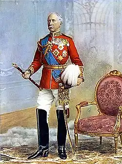 The Second Anglo-Ashanti War broke out in 1863 and lasted until 1864. In 1872, British influence over the Gold Coast increased further when Britain purchased Elmina Castle, the last of the Dutch forts along the coast.[90] The Ashanti, who for years had considered the Dutch at Elmina as their allies, thereby lost their last trade outlet to the sea. To prevent this loss and to ensure that revenue received from that post continued, the Ashanti staged their last invasion of the coast in 1873.[91] After early successes, they finally came up against well-trained British forces who compelled them to retreat beyond the Pra River. Later attempts to negotiate a settlement of the conflict with the British were rejected by the commander of their forces, Major General Sir Garnet Wolseley.[92] The British invaded Ashanti with a sizable military force, initiating the Third Anglo-Ashanti War. The attack, which was launched in January 1874 by 2,500 British soldiers and large numbers of African auxiliaries, resulted in the occupation and burning of Kumasi, the Ashanti capital.[65][67] As a result of the exercise of ever-expanding judicial powers on the coast and also to ensure that the coastal peoples remained firmly under control, the British proclaimed the existence of the Gold Coast Colony on July 24, 1874, which extended from the coast inland to the edge of Ashanti territory.[93] Though the coastal peoples were unenthusiastic about this development, there was no popular resistance.[94] The subsequent peace treaty of 1875 required the Ashanti to renounce any claim to many southern territories. The Ashanti also had to keep the road to Kumasi open to trade. From this point on, Ashanti power steadily declined. The confederation slowly disintegrated as subject territories broke away and as protected regions defected to British rule.[40] Enforcement of the treaty led to recurring difficulties and outbreaks of fighting. In 1896, the British dispatched another expedition that again occupied Kumasi and that forced Ashanti to become a protectorate of the British Crown.[95] This became the Fourth Anglo-Ashanti War which lasted from 1894 until 1896.