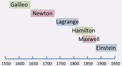 Emmy Noether proved the Noether's theorem in 1918 relating symmetries and conservation laws, it applies to all realms of physics including classical mechanics.[23]