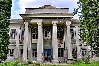 The ruined castle was rebuilt around 1840 into a modern, late-classical, two-story palace by Kornel Horodyski, another owner originally from Volhynia, who converted the castle's two towers into pavilions. The palace during this period was decorated with grandeur both outside and inside. The rooms were decorated with paintings of the Dutch school, there was a large viewing terrace on the first floor, inside there were tiled stoves, fireplaces and chandeliers, and a palace garden at the back of the building. The building was damaged during World War I.[2][3][4]