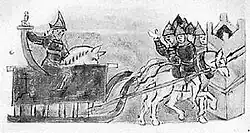 It was only after Svyatoslav's death in late 1076 that Iziaslav was able to recover the status of grand prince. Vsevolod, who had previously fought against him, was appointed Prince of Chernigov and thus heir to the Kievan throne, explaining perhaps Vsevolod's lack of opposition.[8] The Poles were persuaded by the papacy to give Iziaslav assistance recovering his kingdom, and on 15 July 1077, Iziaslav re-entered Kiev.[12]