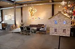 The organization has offices in the Crane Arts building, a warehouse-turned-art space originally built in 1906, and located at 1400 N. American Street in the Kensington neighborhood of Philadelphia.[12] Year-round member exhibitions are held in neighborhoods throughout the city and the surrounding region. Regular InLiquid exhibition spaces include Park Towne Place and The National Old City Apartments. Past InLiquid exhibition spaces include the Painted Bride Art Center in Old City, International House Philadelphia in University City, and the Sundance TV offices in New York.[13] Past partnerships have included Gallery 543 at URBN Headquarters, the Leonard Pearlstein Gallery at Drexel University, project space de, Feast Your Eye’s Salon at Front+Palmer, Marriott Courtyard at the Philadelphia Naval Shipyard, Carpenter Square, minima, Bryn Mawr Film Institute, West Elm], the digital cube at the Kimmel Center for the Performing Arts, the media wall at Commerce Square, Spruce Street Harbor Park, James Oliver Gallery, Select Fair Miami, Select Fair New York, River's Edge Gallery at Bridgeton House, Engagement Studios, bahdeebahdu, and Old City Publishing.[14]