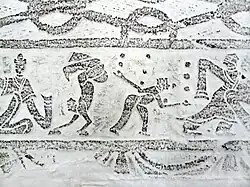 A tombstone from the Han dynasty depicting a juggler with twelve balls. (From the Shaanxi Suide County Museum)