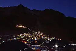 Night view of the tents at the cirque below the peak of Mount Kitahotaka