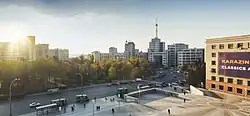 In March and April 2014, the city saw both pro-Russia and pro-Ukrainian demonstrations, and an aborted attempt by Russian-backed separatists to seize control of the city and regional administration. Kharkiv was a major target for Russian forces in the eastern Ukraine campaign during the Russo-Ukrainian War before they were pushed back to the international border. The city remains under intermittent Russian fire, with reports that by April 2024 almost a quarter of the city had been damaged or destroyed.[9][10][11]