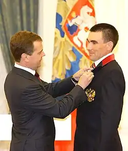 Kirill Mikhaylov is awarded the Order for Services to the Fatherland, fourth degree, in Russia, by President Dmitry Medvedev, for winning three gold and two silver in biathlon and cross-country skiing at the 2010 Winter Paralympics.