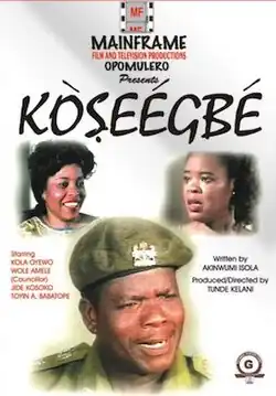 6. ^ Oyewo, Kola; Babatope, Toyin A; Amele, Wole; Kosoko, Jide; Ogunmola, Peju; Shodimu, Yemi; Ojeyemi, Tunji; Eboigbe, Faith; Ogunsola, Yetunde (1995), Kòṣeégbé, Lagos [Nigeria: Mainframe : Distributors Alasco Video Film Production, Blessed J.O. Adeoye, Alelele Bros. & Co., OCLC 39878333