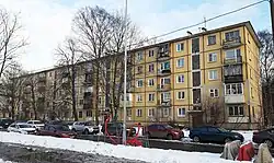 Khrushchevkas (Russian: хрущёвка, romanized: khrushchyovka, IPA: [xrʊˈɕːɵfkə]) are a type of low-cost, concrete-paneled or brick three- to five-storied apartment buildings (and apartments in these buildings) which were designed and constructed in the Soviet Union since the early 1960s, when their namesake, Nikita Khrushchev, was leader of the Soviet Union.[1]