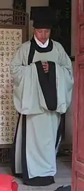 Da gua 大褂 "Great gown"[27] It is a common type of informal, daily clothing worn by Taoists; in present days, it is mostly narrow-sleeved and blue in colour.[32] Unknown – Present