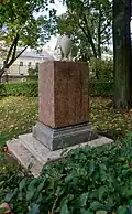 During the early Soviet period a number of monuments were stolen or destroyed. The cemetery was officially closed for burials in 1927, though they continued until 1932, and it was decided to turn it into a necropolis museum, displaying historically and artistically significant graves.[2][1] Alongside this was concept of gathering together the graves of the friends and contemporaries of Alexander Pushkin for the 1937 centenary commemorations of the poet's death. The architectural and planning department of Lensovet, the city administration, was tasked with creating a memorial park project.[2] Plans were drawn up by architects E.N. Sandler and E.K. Reimers, with further input from the city's chief architect L.A. Ilyin.[2] The Funeral Affair Trust was established to run the necropolis museum, including removing abandoned gravestones for sale as building materials.[4] The reconstruction radically altered the nature and appearance of the Tikhvin cemetery. With the intention being to create an "artists' necropolis", graves of those from other sections of society were removed. Fewer than a hundred of the original monuments were preserved.[2] Meanwhile, the remains of prominent artists, sculptors, composers and musicians were reburied in the cemetery. Among them were personal friends of Pushkin, including Konstantin Danzas, Anton Delvig, and Fyodor Matyushkin.[2]