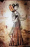 Jianqun or Jiansequn 间裙 or 间色裙 Stripped skirts.[15] It was a high waisted skirts which integrated both the techniques of the Han dynasty and foreign techniques from the Western Region.[16] In the Sixteen kingdoms, the skirt had panels of different colours; which could vary to: 6, 8, 12 regions.[16] From the Northern dynasty to the Tang dynasty, the skirt had denser multiple stripes.[16] In Tang, the stripped skirt was A-line.[17] Wei, Jin, Northern and Southern dynasties - Tang dynasty