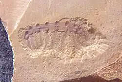 Fossil of Microdictyon sinicum, showing pairs of sclerite and trace of trunk and lobopods.