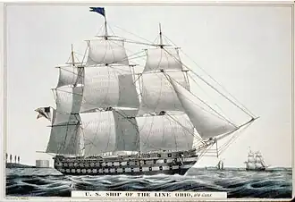 Currier and Ives engraving of the USS Ohio, where McLean served aboard from 1838 to 1840