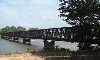 Manampitiya Bridge is the second longest bridge in Sri Lanka with a length of 302 m (991 ft). It comprises two bridges, an early-twentieth-century steel bridge which is used for railway and a newly built bridge carrying two lanes of highway. Before the Kinniya Bridge was declared open in 2009, it was the longest bridge in Sri Lanka. The steel bridge was built in 1922, during the colonial rule.[1] It is 291 m (955 ft) long and less than 5 m (16 ft) in width.[2] The bridge is located 81 km (50 mi) east of Maradankadawala, along the A11 Habarana-Thirikondiyadimadu road in Polonnaruwa District, linking North Central Province with Eastern Province over Mahaweli River.[3] The new bridge in Manampitiya was built with financial assistance of Japan, hence the name Sri Lanka-Japan Friendship Peace Bridge.[4] Japan International Cooperation Agency (JICA) provided LKR 1.3 billion on behalf of the Japanese government. Bridge was declared open on 25 October 2007 by President Mahinda Rajapaksa. The new 50 Sri Lankan Rupee note depicts the Manampitiya Bridge.[5]