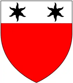 Arms of Prust of Thorry, Hartland: Gules, on a chief argent two estoiles sable[17]