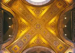 The mosaic ceiling of the rotunda is covered predominantly in gold back-painted glass tiles