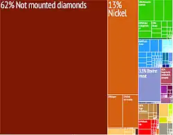 The mining industry of Botswana has dominated the national economy of Botswana since the 1970s, being a primary sector industry.[3] Diamond has been the leading component of the mineral sector ever since production of gems started being extracted by the mining company Debswana.[4][5] Most of Botswana's diamond production is of gem quality, resulting in the country's position as the world's leading producer of diamond by value.[4] Copper, gold, nickel, coal and soda ash production also has held significant, though smaller, roles in the economy.[4]