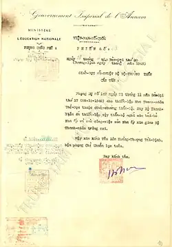 The Bảo Đại Emperor officially signed an imperial decree (dụ) on 2 May 1933 establishing the Ministry of National Education.[16]