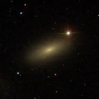 NGC 4436 is a lenticular or dwarf elliptical galaxy located about 60 million light-years away[3][4] in the constellation of Virgo.[5] NGC 4436 was discovered by astronomer William Herschel on April 17, 1784.[6] The galaxy is a member of the Virgo Cluster.[7]