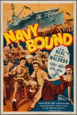 Navy Bound is a 1951 American drama film directed by Paul Landres and written by Samuel Roeca. The film stars Tom Neal, Wendy Waldron, Regis Toomey, John Abbott, Murray Alper and Paul Bryar. The film was released on March 4, 1951, by Monogram Pictures.[1][2][3]