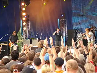The band's work is diverse and influenced by a variety of styles, including alternative rock, pop punk, punk rock, art punk, experimental rock and others. Later works also include elements of electronic music. Lyrically, they are characterised by frequent use of humor and parody. While some of their albums include English lyrics, the majority of their work is in Russian. While originally from Moscow, the band relocated to the US in 2016[2] and for political reasons no longer performs in Russia.[3]