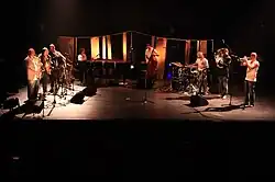 • American new wave band Oingo Boingo was an octet for most of its 17-year history, with 5 members in traditional rock music roles (Vocals/Rhythm Guitar, Lead Guitar, Bass, Drums, Keyboard) plus a 3 person horn section.