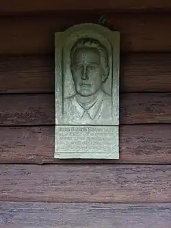 A bas-relief with a memorial plaque in honor of Father Oleksa Volianskyi on the facade of the Church of the Nativity of the Virgin Mary in Kryvorivnia, where he served from 1893 to 1923.