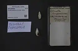 Olivella pedroana is a species of small sea snail, marine gastropod mollusk in the subfamily Olivellinae, in the family Olividae, the olives. Species in the genus Olivella are commonly called dwarf olives.[2]