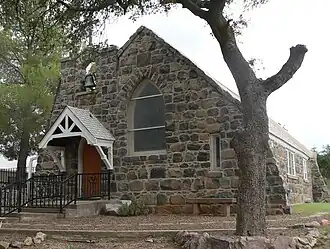 The small village Gothic Revival church with Spanish influences was designed by Tucson-based architect Robert Rust and built in fall 1901. Constructed of dark granite by stonemason Jesus Osoma, the small building was listed on the National Register of Historic Places on August 3, 1984.[1] It is a non-denominational Christian church.