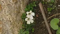 Compared to O. fuegiana, O. pygmaea has glabrous leaves and petioles, sessile floral bracts, spreading corolla lobes, and longer styles >2.5 mm (vs. hairy leaves and petioles, petiolate floral bracts, corolla lobes that are not spreading, and short styles <1.6 mm long in O. fuegiana).[8][2] O. pygmaea can be distinguished from O. breviflora by its white corollas; entire, sessile and small (<3.6 mm long) floral bracts; glabrous petioles (vs. pink or lilac corollas; toothed, petiolate and larger (>3.0 mm long) floral bracts; and hairy petioles in O. breviflora).[2]
