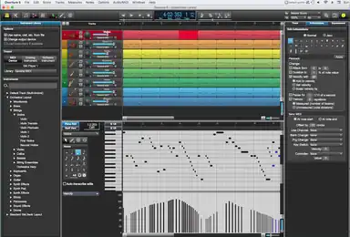 The software enables graphical editing of all MIDI audio playback data (such as duration, loudness, pitch bend, sustain, attack/decay time, and breath control) for each individual note. This can be done either on the score itself, or via a scrolling view in the style of a DAW. MIDI data is displayed as a scrolling piano roll view, alongside either a piano keyboard, or treble and bass staves.