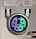 The PS/2 port is a 6-pin mini-DIN connector used for connecting keyboards and mice to a PC compatible computer system. Its name comes from the IBM Personal System/2 series of personal computers, with which it was introduced in 1987. The PS/2 mouse connector generally replaced the older DE-9 RS-232 "serial mouse" connector, while the PS/2 keyboard connector replaced the larger 5-pin/180° DIN connector used in the IBM PC/AT design. The PS/2 keyboard port is electrically and logically identical to the IBM AT keyboard port, differing only in the type of electrical connector used. The PS/2 platform introduced a second port with the same design as the keyboard port for use to connect a mouse; thus the PS/2-style keyboard and mouse interfaces are electrically similar and employ the same communication protocol. However, unlike the otherwise similar Apple Desktop Bus connector used by Apple, a given system's keyboard and mouse port may not be interchangeable since the two devices use different sets of commands and the device drivers generally are hard-coded to communicate with each device at the address of the port that is conventionally assigned to that device. (That is, keyboard drivers are written to use the first port, and mouse drivers are written to use the second port.[1])
