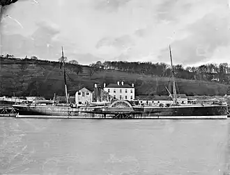PS Milford was one of a pair of ships ordered from William Simons and Company of Renfrew, the other being PS Limerick. She was built under the superintendence of Mr Glover, the consulting engineer of the Great Western Railway and launched on 9 August 1873 by Miss Brown.[2] She undertook sea trials October and on 20 October 1873 was reported as proceeding along the River Clyde at a speed of 14.3 knots, despite a heavy swell and severe gale.[3]