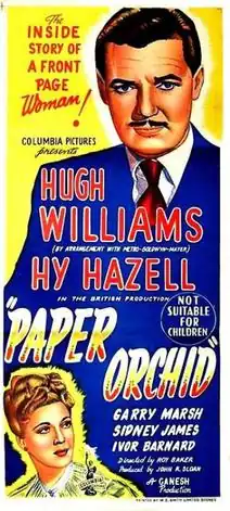 Paper Orchid is a 1949 British crime film directed by Roy Ward Baker, with a script written by Val Guest. It featured Hugh Williams, Hy Hazell and Garry Marsh, and was based on the 1948 novel of the same title by Arthur La Bern.[1] It featured an early film appearance by Sid James, who later found success through the Carry On series.