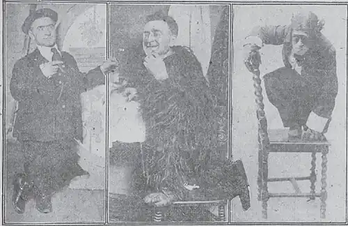 A triptych of Walshe, from The Boston Post, 1920. From left to right: Walshe outside his monkey costume, getting into his costume, and in full costume with makeup.